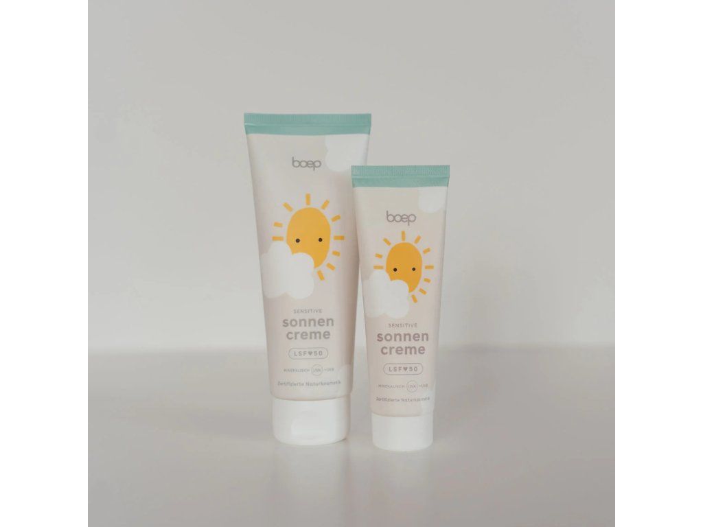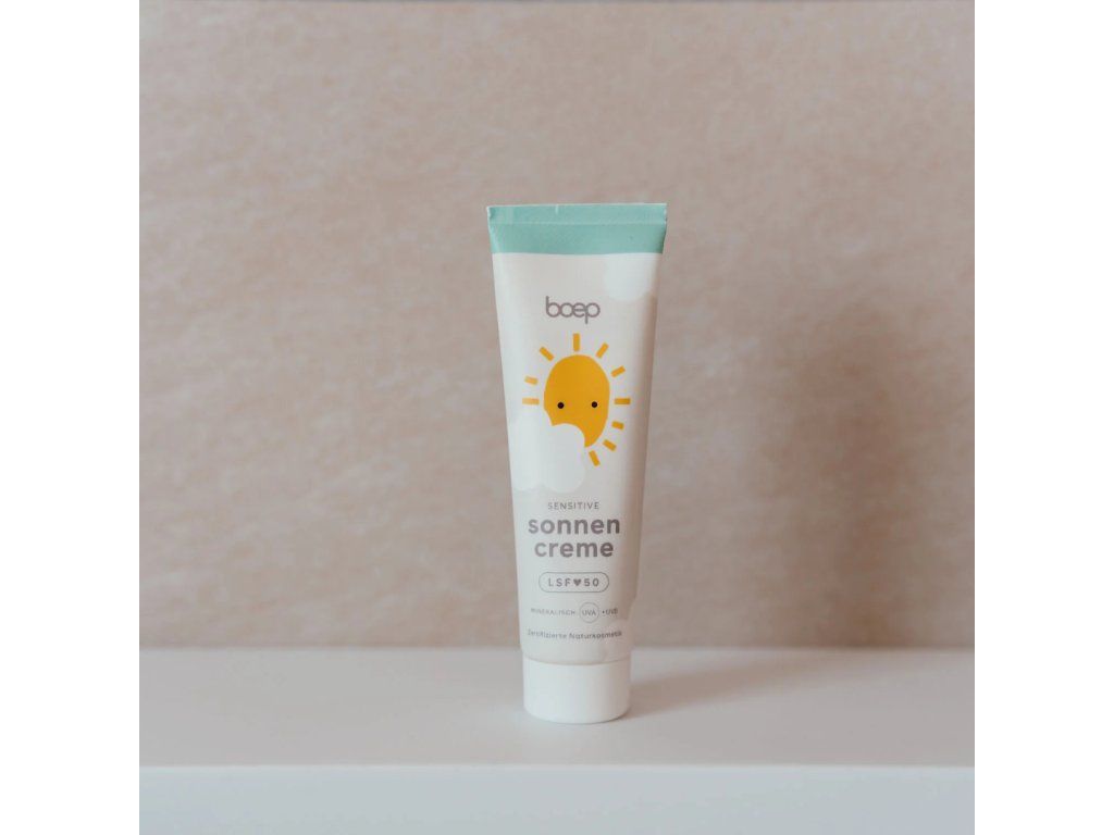 Boep minerální opalovací krém Sensitiv SPF 50 je bez parfemace a poskytuje extra vysokou ochranu citlivé pokožce miminek, dětí i dospělých. Díky čistě minerálnímu filtru na bázi oxidu zinečnatého spolehlivě chrání před UVA i UVB zářením. Krém je veganský a dermatologicky testovaný s nejlepším možným hodnocením „velmi dobře snášen pokožkou“. I při vysokém ochranném faktoru se velmi dobře roztírá a nezanechává nežádoucí bílý film.
