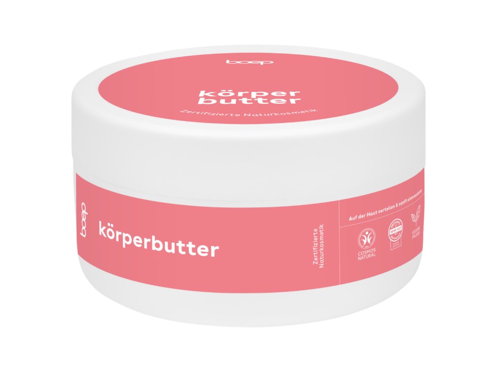 Boep tělové máslo s vysoce kvalitním mandlovým olejem a bambuckým máslem vyživuje pokožku a zanechává ji extra jemnou. Organické výtažky z měsíčku lékařského zmírňují pocity pnutí a ošetří případně podrážděnou pokožku - vaše kůže si tak může opět odpočinout.